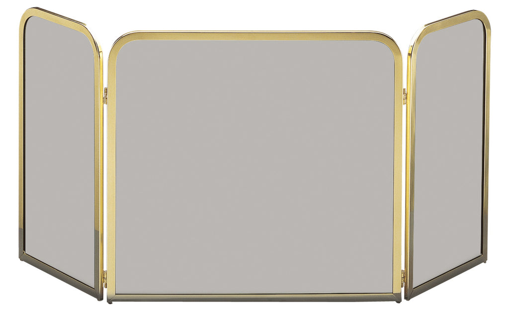 Griglia parascintille in vetro rivestito in fumé, con cornice in ottone.