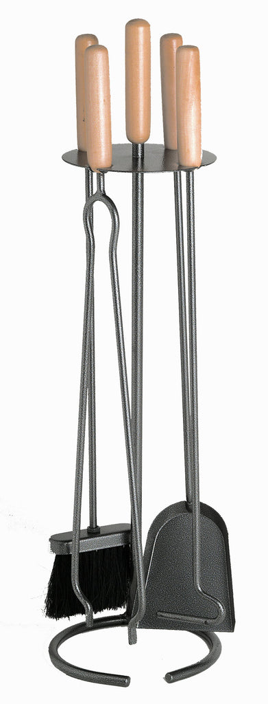 Set attrezzi rivestito in antracite con manici in legno.