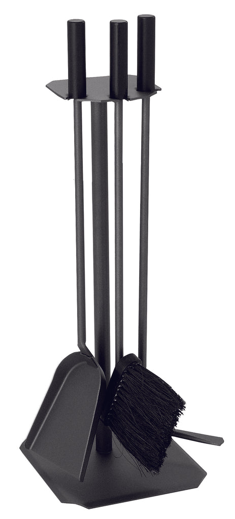 Set attrezzi rivestito in antracite con manici in legno nero.