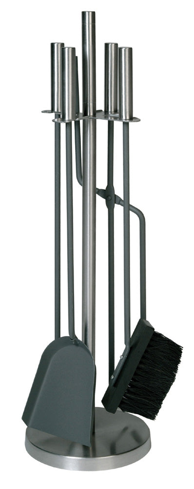 Set attrezzi in acciaio inox spazzolato opaco, posate antracite con manici in acciaio inox.